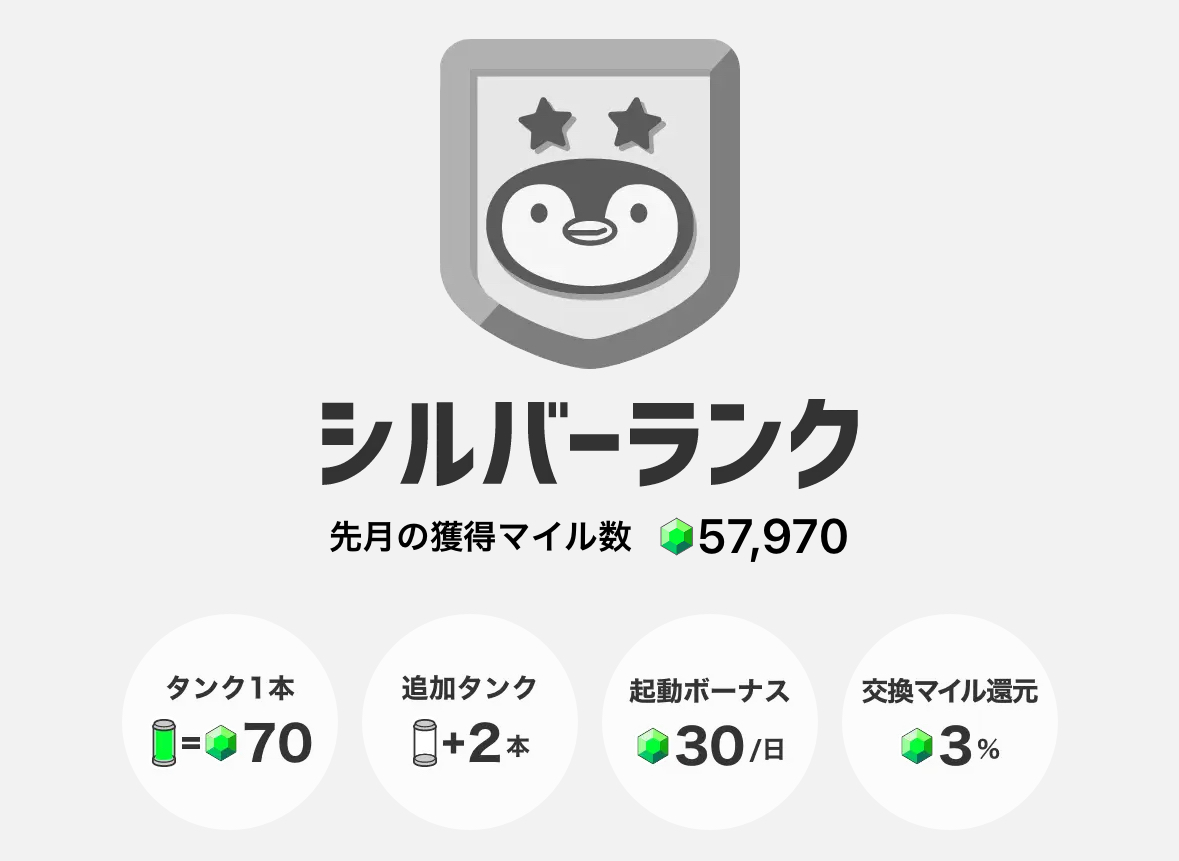 移動距離が長い方は、タンクをこまめに回収すればもっとマイルを貯めることができるでしょう。